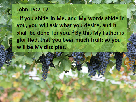 7 If you abide in Me, and My words abide in you, you will[a] ask what you desire, and it shall be done for you. 8 By this My Father is glorified, that you bear much fruit; so you will be My disciples.