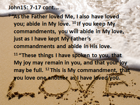 9 “As the Father loved Me, I also have loved you; abide in My love. 10 If you keep My commandments, you will abide in My love, just as I have kept My Father’s commandments and abide in His love.
