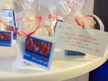 • Oceania For Christ office presented gifts with NOW card to staff at the local Merlo coffee shop