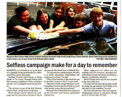 It is the outworking of the old saying, that “nothing is as powerful as an idea whose time has come”. Because of all the negative news that pervades our society – violence, corruption, greed and immorality – the idea of taking a week to just be kind to other people obviously hit a “hot button” not only in Australia but in other countries such as England, Chile, New Zealand etc.