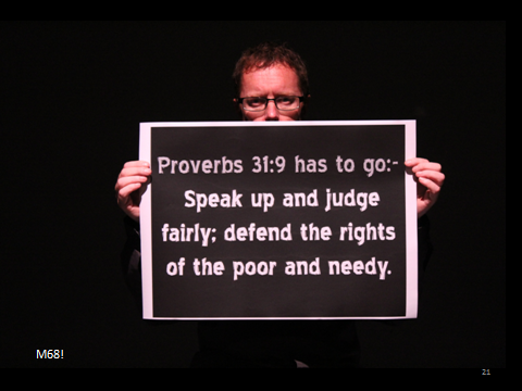 In February 2013 I preached a message titled The Silence of the Lambs. This message pretty much contained no voice and all communication was done via Posters or Video. Here are the posters that I used and the video links. I had my mouth taped shut for the duration of the message (except for 5 minutes at the end).