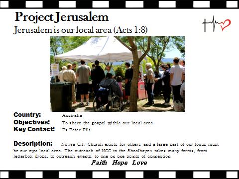 Remember if you would like to give into one of these projects, email me at peter@nowracitychurch.com.au