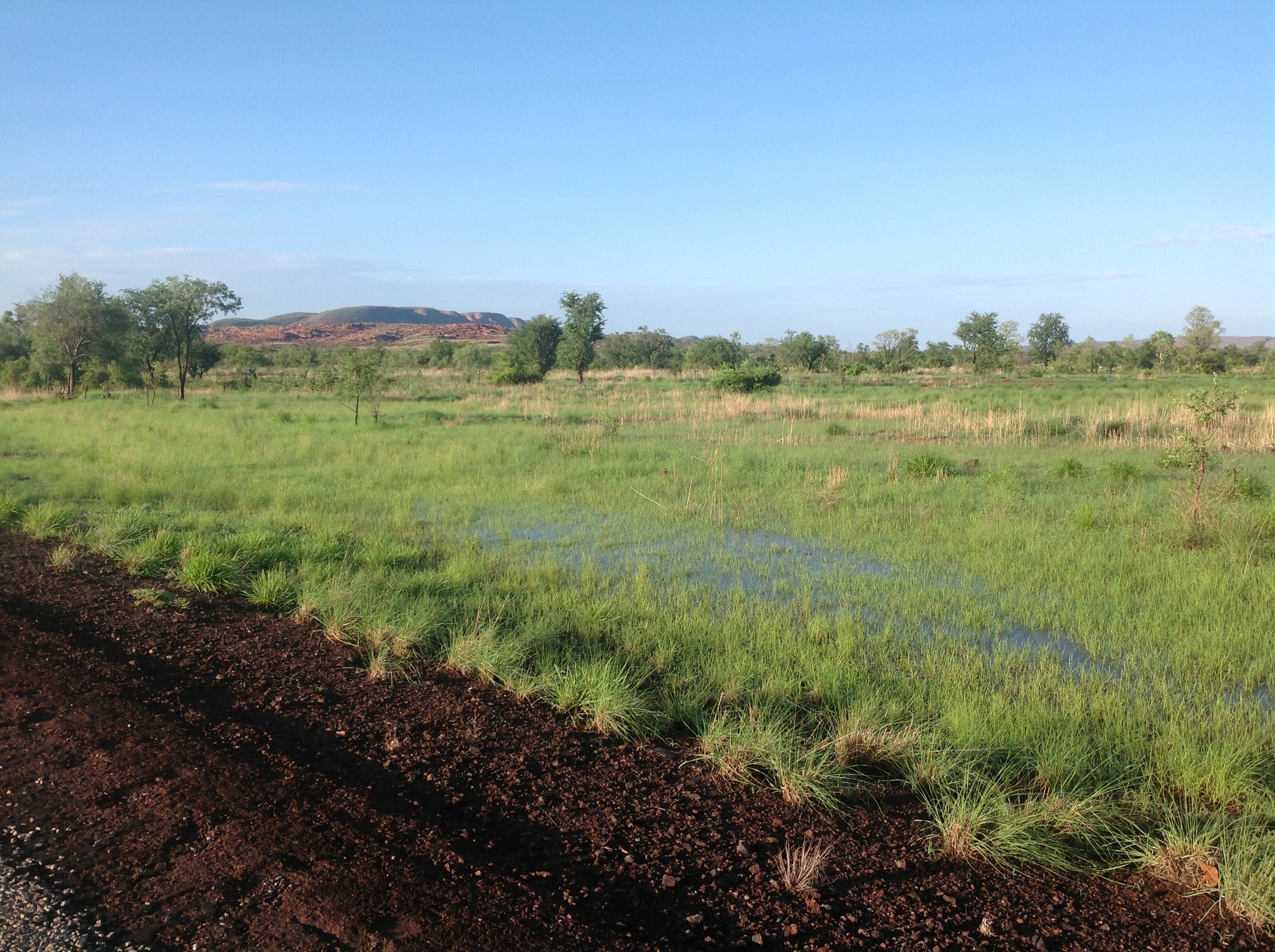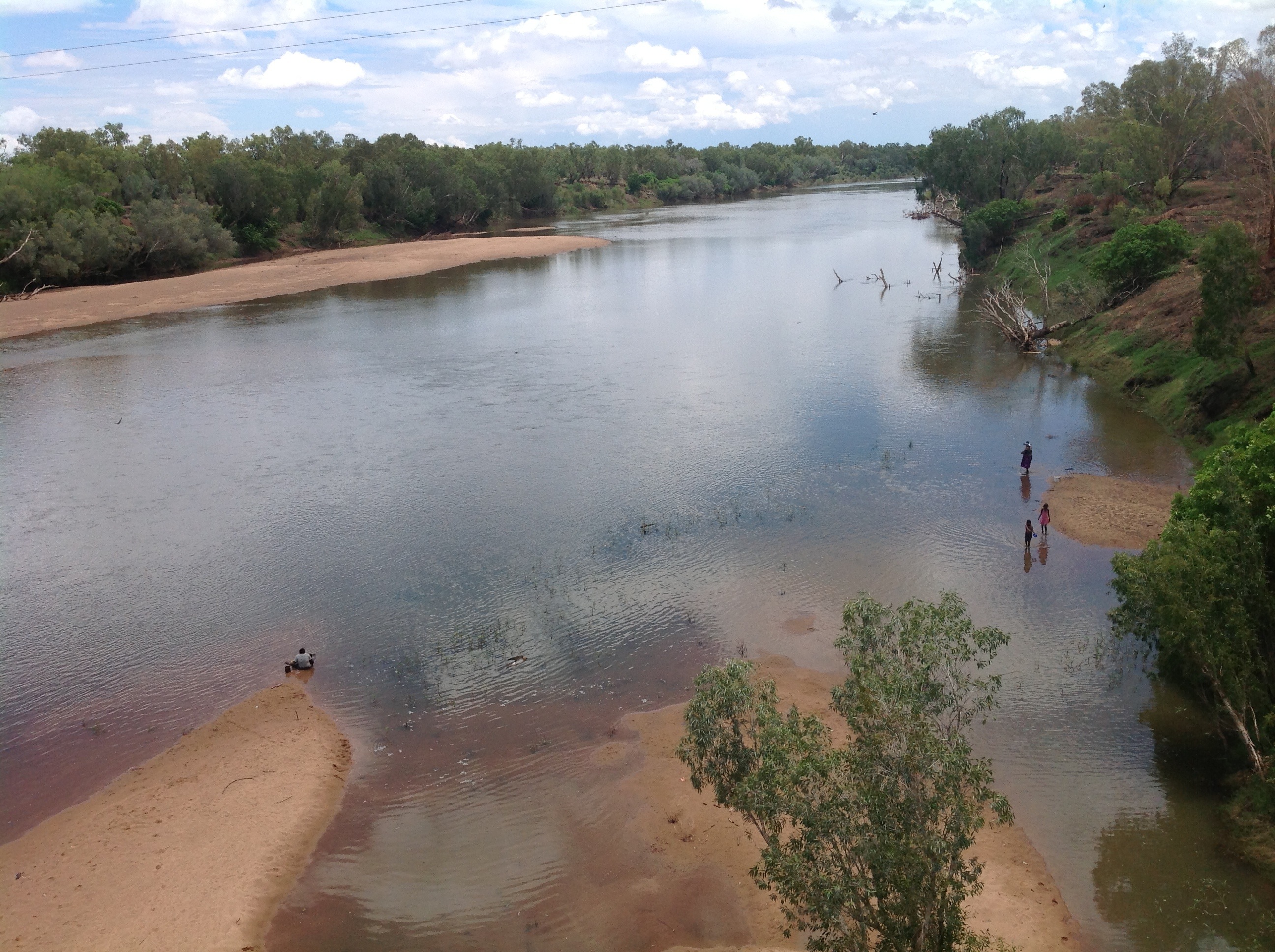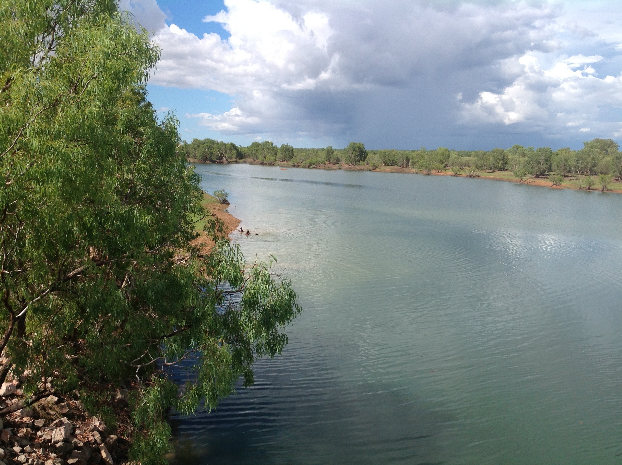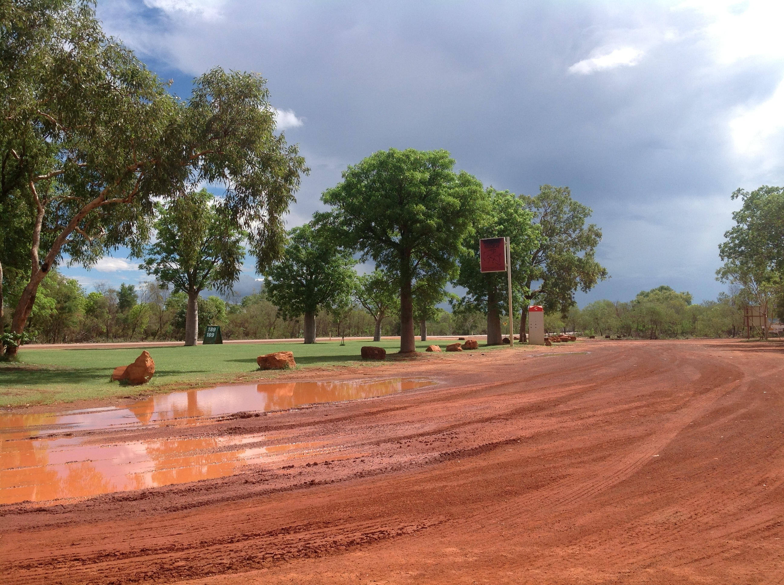 I took some photos of a river where some aboriginal children were swimming and playing. Such a delightful sound:- kids playing in the water. I also hit half way in the trip today at Halls Creek. I am on my way home now.