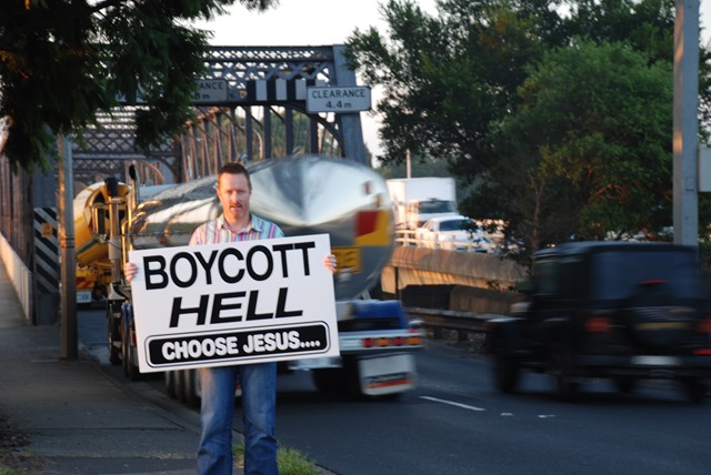 During this Easter Weekend, I as the Pastor of the church, called for a citywide boycott of Hell. Our Easter services were run as protest rallies complete with protest speakers talking about how we all need to boycott Hell and choose Jesus.