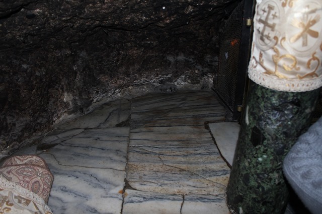 Just in case you don’t know, the Church of the Holy Sepulchre is a church that is built around one of two possible crucifixion sites of Jesus. Charlie believes this site is the actual one. Not going to give you a whole stack of photos from this church but I will show you two photos. The first one is from the outside and shows the entry into the church. The second one is of one storey down, directly below the spot they say Jesus died. The photo is taken looking through a window showing a crack in the earth. In Matthew 27:51 it says Then, behold, the veil of the temple was torn in two from top to bottom; and the earth quaked, and the rocks were split. Apparently the rocks are split from the top of the earth through several storeys down. I found this intriguing. Was this evidence that this was the actual spot? It was kind of cool to see. What if this was the crack in the ground that came from Matthew 27:51? What an amazing thing to see.