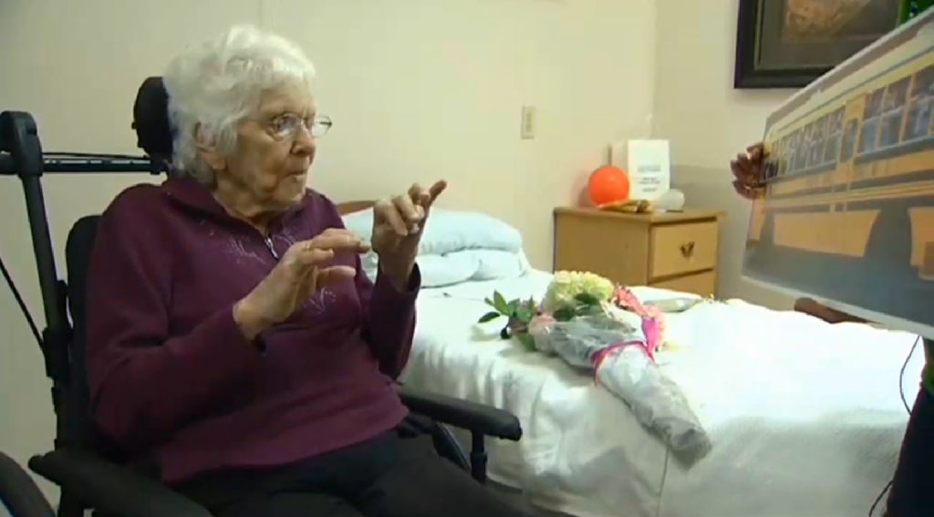 93-year-old Louise Edlen has been waving to this school bus full of lively children for the last 5 years from her little dining room window.