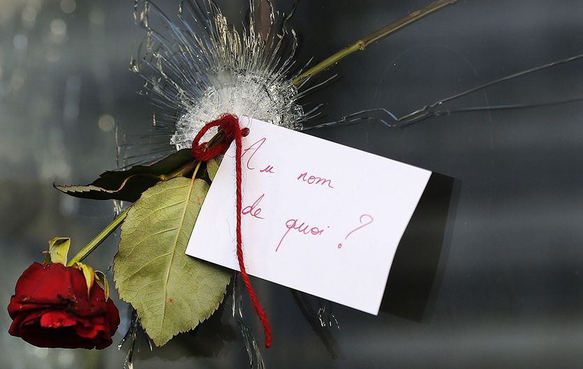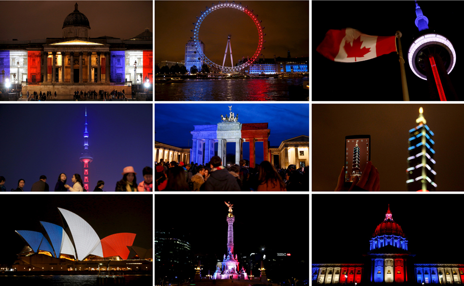 38) Paris was attacked again by terrorists in November. 132 people were killed. Iconic buildings around the world were bathed in the colours of the French Flag as a show of solidarity.