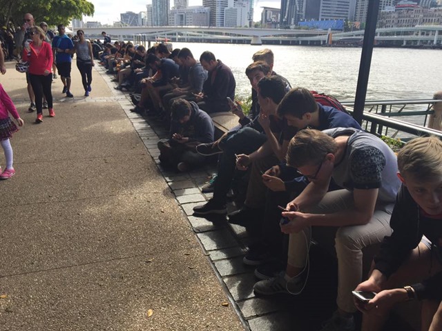 Another observation I saw, was a young lady in Melbourne saying that the Pokies at lunch gave the city a real communal feel and she observed it shows how much people crave a shared experience. Certainly this is an interesting observation. In a world of hyper connectivity, the stats are showing we are one of the loneliest generations ever. Maybe Pokies will make actual friends as they play…Although as I walked through what can only be described as a Pokémon nest (I think the correct term is Pokestop) at Southbank in Brisbane on Sunday (see Pic), I must admit there was not a lot of talking happening.