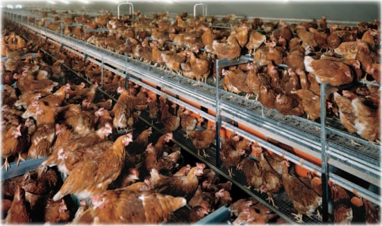 - Hens are forced into over-crowded conditions where hundreds of hens are packed in small spaces and often trample each other, live in their own faeces and waste, in very unsanitary conditions.