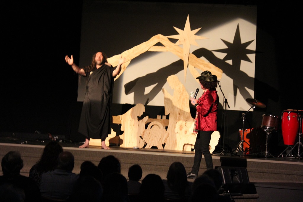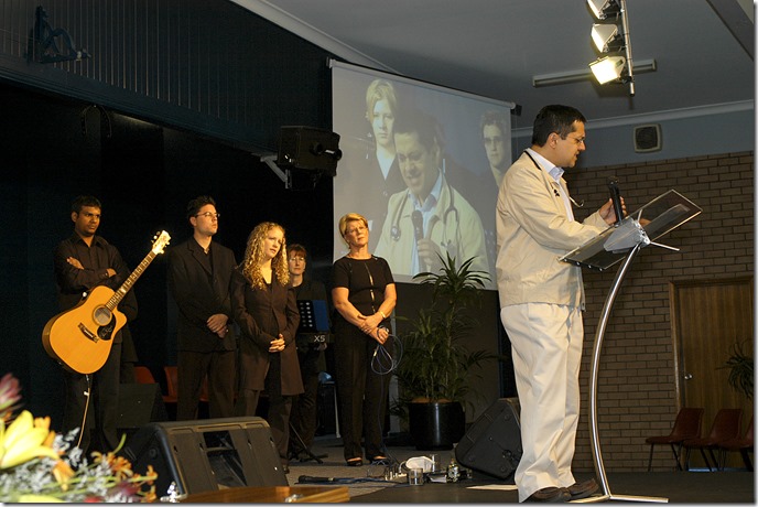 At Nowra City Church we had a police lady, a paramedic, a doctor and a forensic photographer all part of the church. So one Good Friday service we had them speak as if they had just been called to a scene that was a man crucified on a cross….what did they observe from their profession viewpoint and what in their professional role would they actually do? The police lady had to get official permission to wear her uniform in this church service, which was granted. The second pic of her is her unveiling the murder weapon.